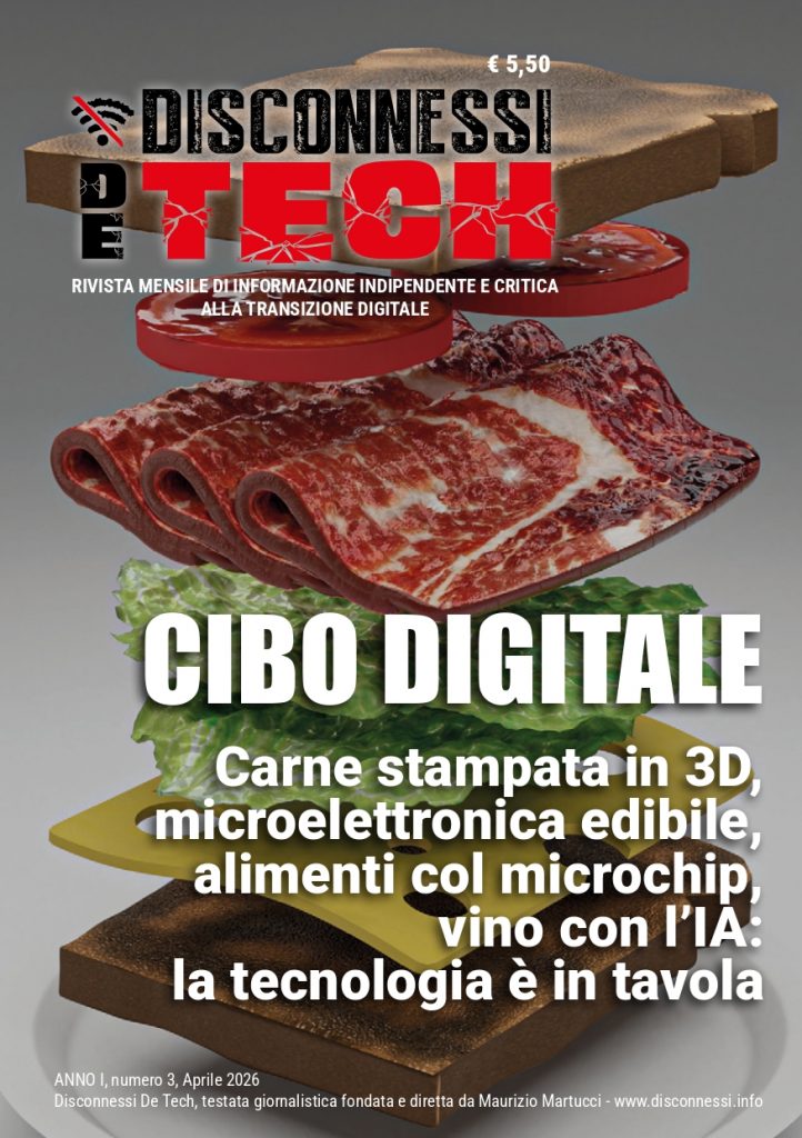 Disconnessi De Tech è testata giornalistica su carta. La prima e unica rivista mensile d’Italia di approfondimento, informazione e critica al futuro che prima non c’era. L’uscita del terzo numero apre con un’inchiesta a firma di Maurizio Martucci sulla tecnologia che sbarca in tavola. Investita dalla transizione digitale pure la catena alimentare. Ecco un’anticipazione di Disconnessi De Tech, la rivista da sfogliare e direttamente nelle tue mani. Solo in abbonamento e acquisto singola copia.