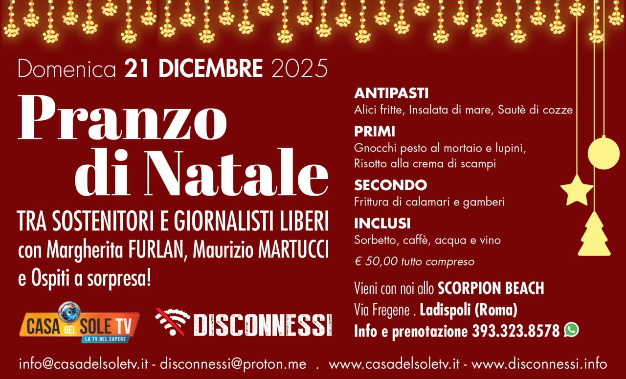 Domenica 21 Dicembre pranzo natalizio tra sostenitori e informazione indipendente, l’occasione per condividere a tavola i risultati conseguiti nel 2025, annunciando gli obiettivi strategici del 2026.